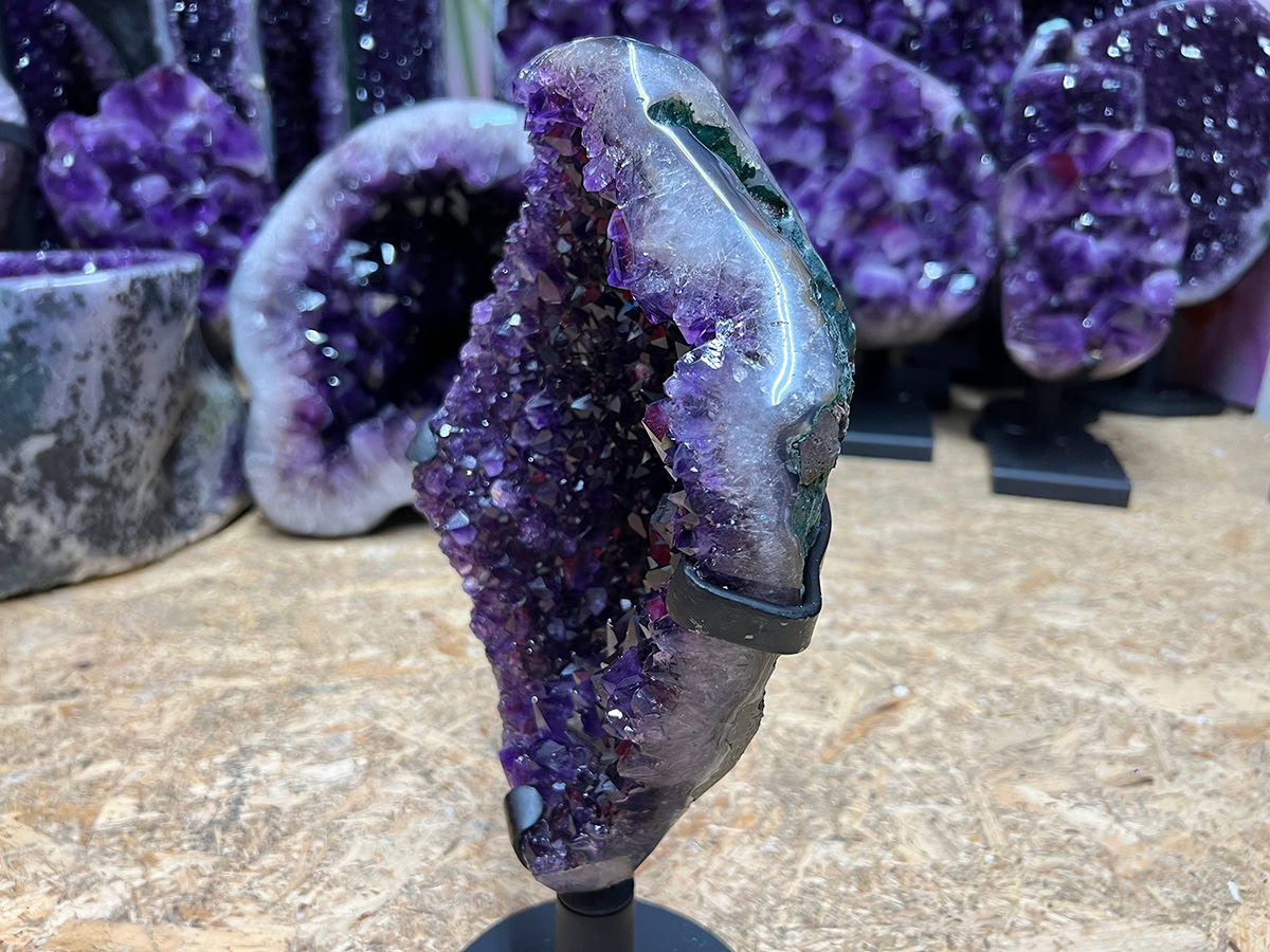 Amethist werkt beschermend, zuiverend, ontspannend, brengt harmonie en innerlijke rust. Het maakt je hoofd helder en geeft inzicht in je gedrag en in de keuzes die je maakt. Hierdoor helpt het slechte gewoontes en verslavingen te erkennen en achter je te laten.