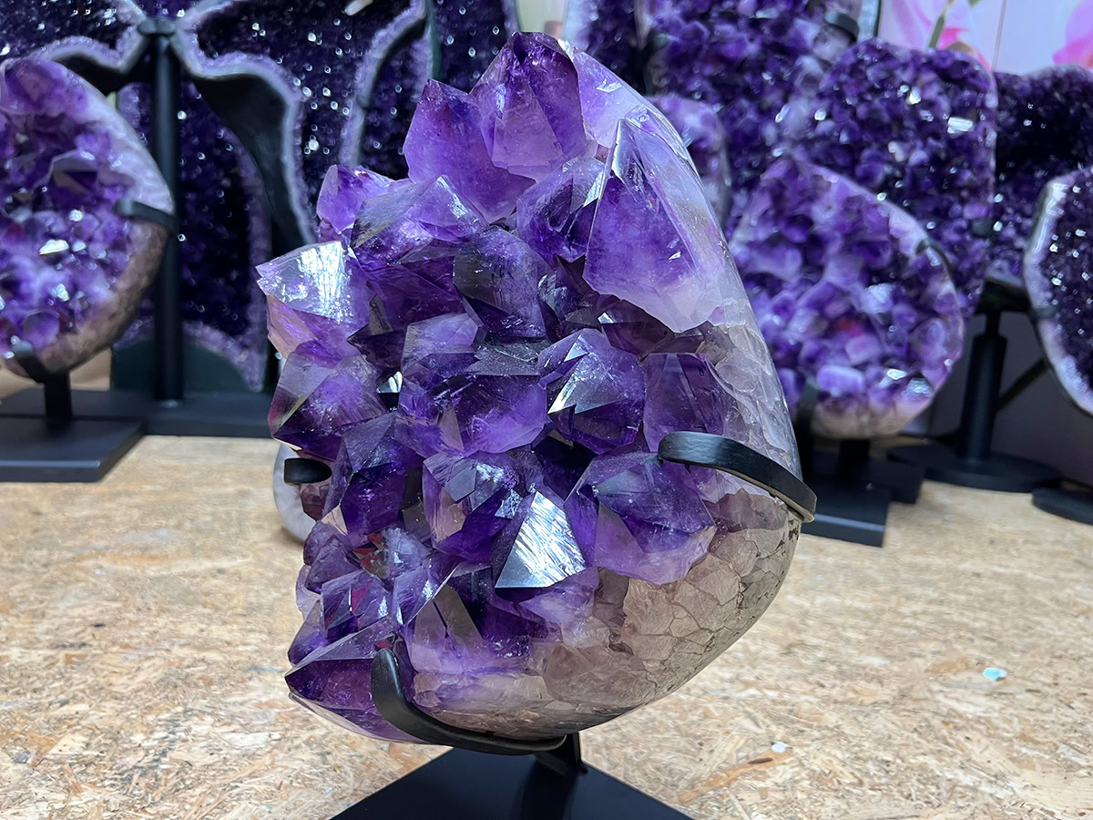 Amethist werkt beschermend, zuiverend, ontspannend, brengt harmonie en innerlijke rust. Het maakt je hoofd helder en geeft inzicht in je gedrag en in de keuzes die je maakt. Hierdoor helpt het slechte gewoontes en verslavingen te erkennen en achter je te laten.