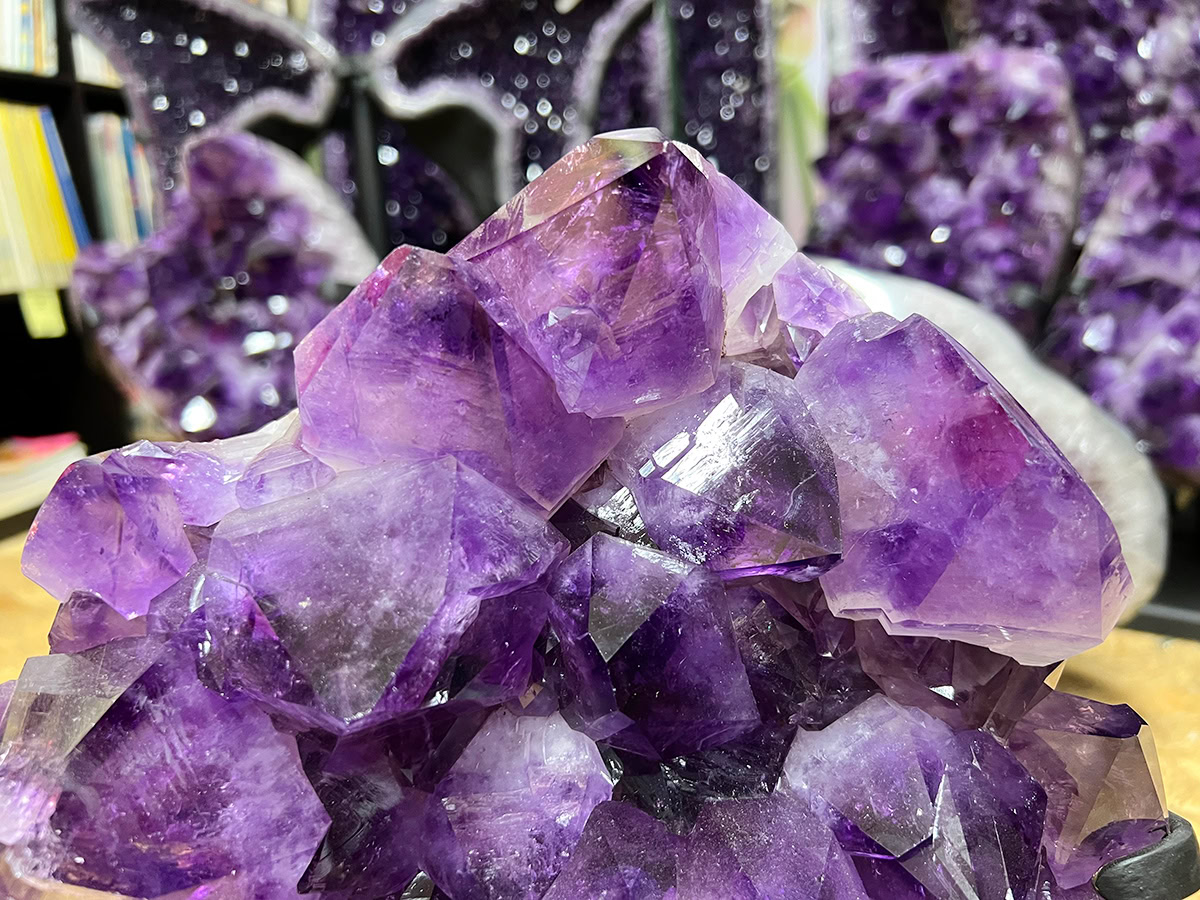 Amethist is een lila tot donkerpaarse, doorzichtige steen met een glasachtige glans. De steen behoort tot de macrokristallijne kwarts-familie.