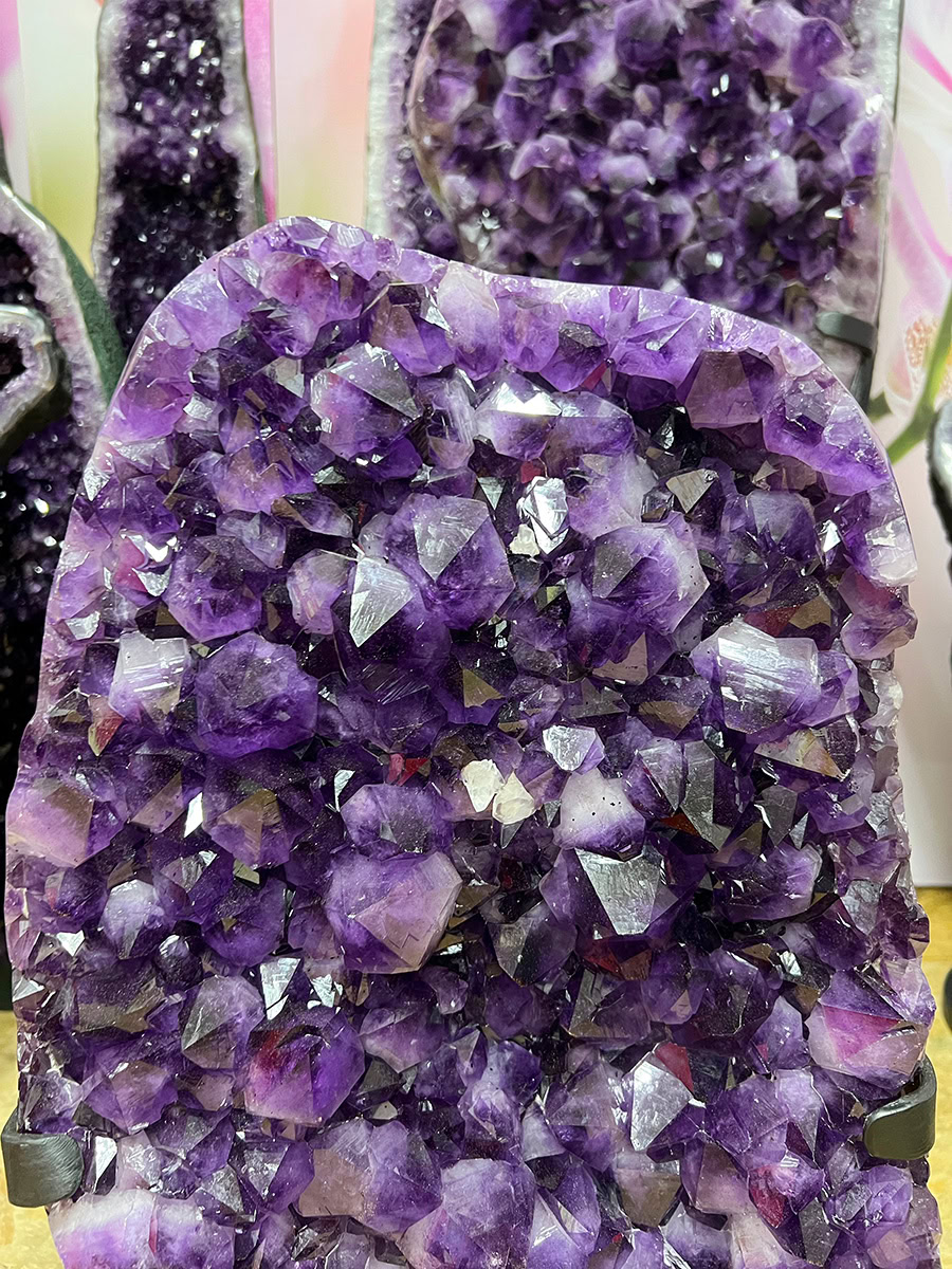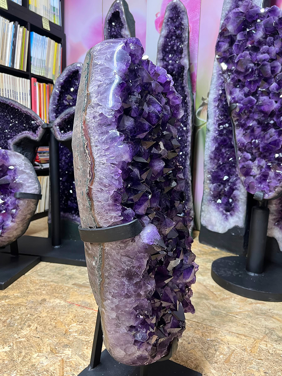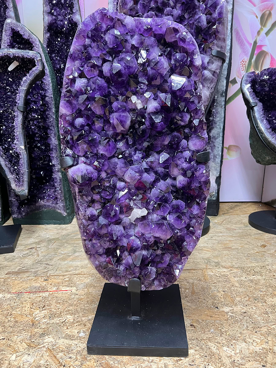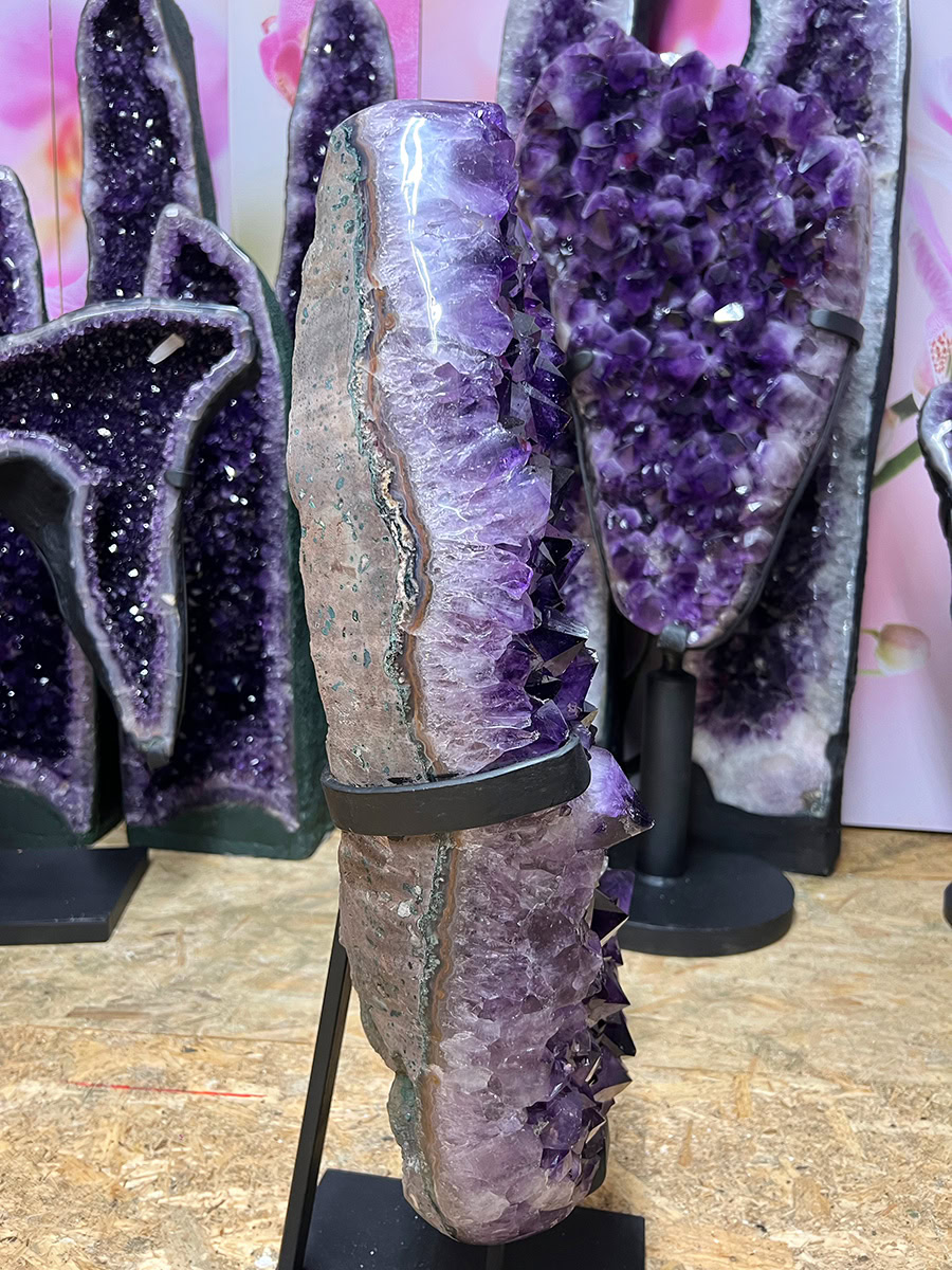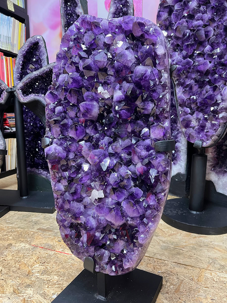 Amethist werkt beschermend, zuiverend, ontspannend, brengt harmonie en innerlijke rust. Het maakt je hoofd helder en geeft inzicht in je gedrag en in de keuzes die je maakt. Hierdoor helpt het slechte gewoontes en verslavingen te erkennen en achter je te laten.