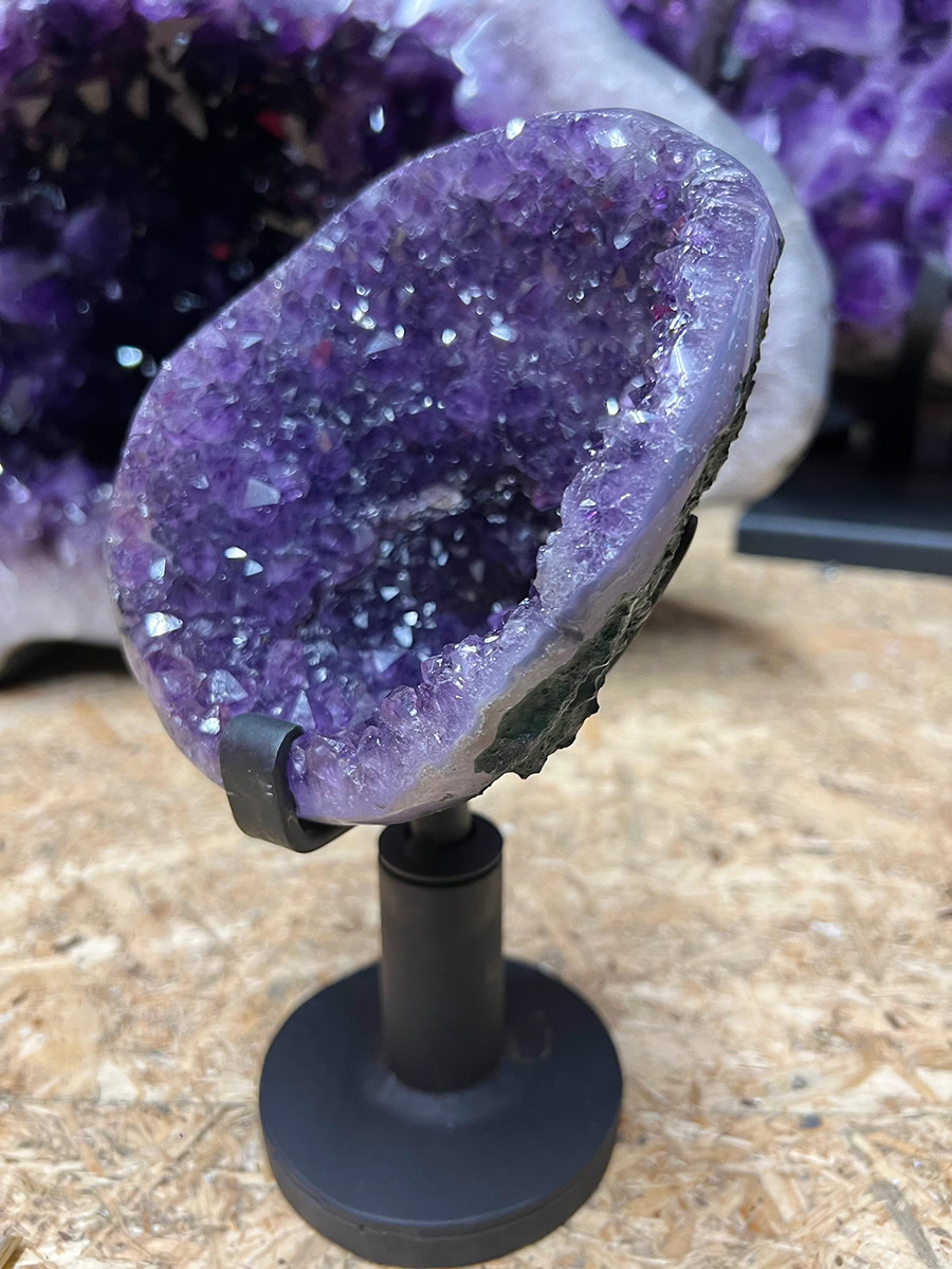 Amethist werkt beschermend, zuiverend, ontspannend, brengt harmonie en innerlijke rust. Het maakt je hoofd helder en geeft inzicht in je gedrag en in de keuzes die je maakt. Hierdoor helpt het slechte gewoontes en verslavingen te erkennen en achter je te laten.