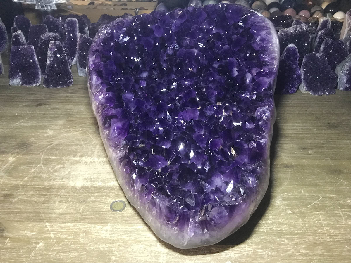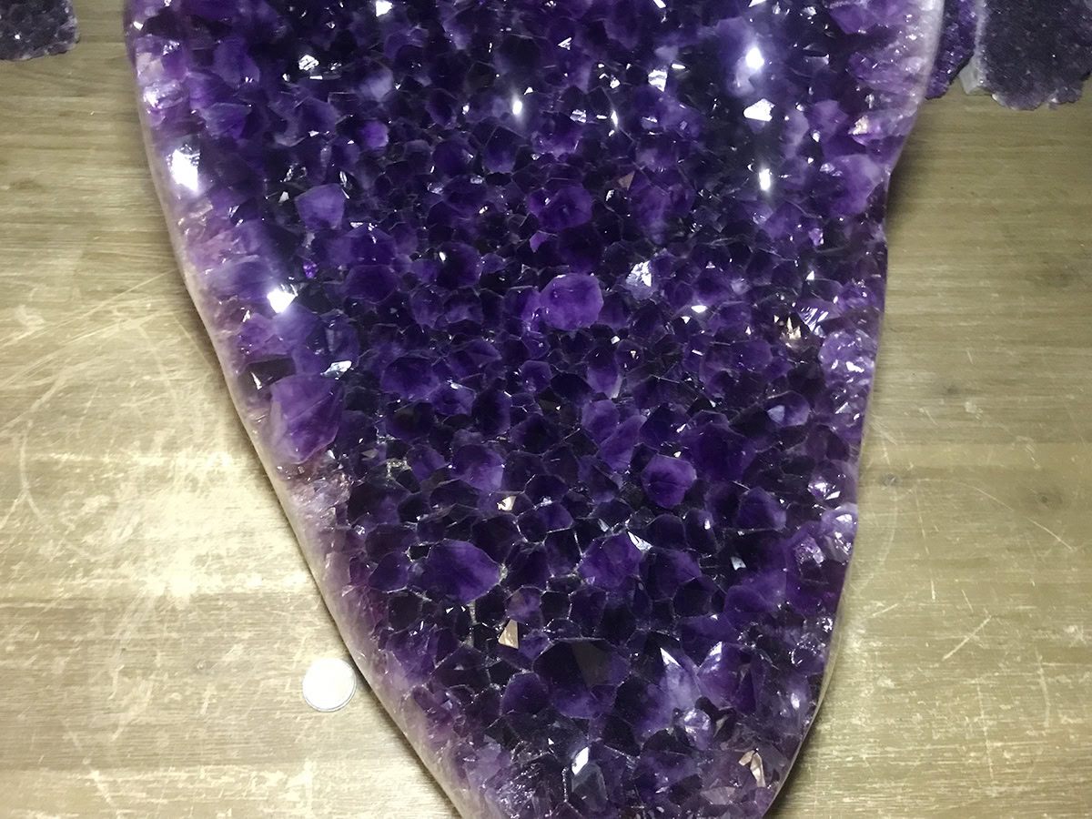 Amethist is een lila tot donkerpaarse, doorzichtige steen met een glasachtige glans. De steen behoort tot de macrokristallijne kwarts-familie.