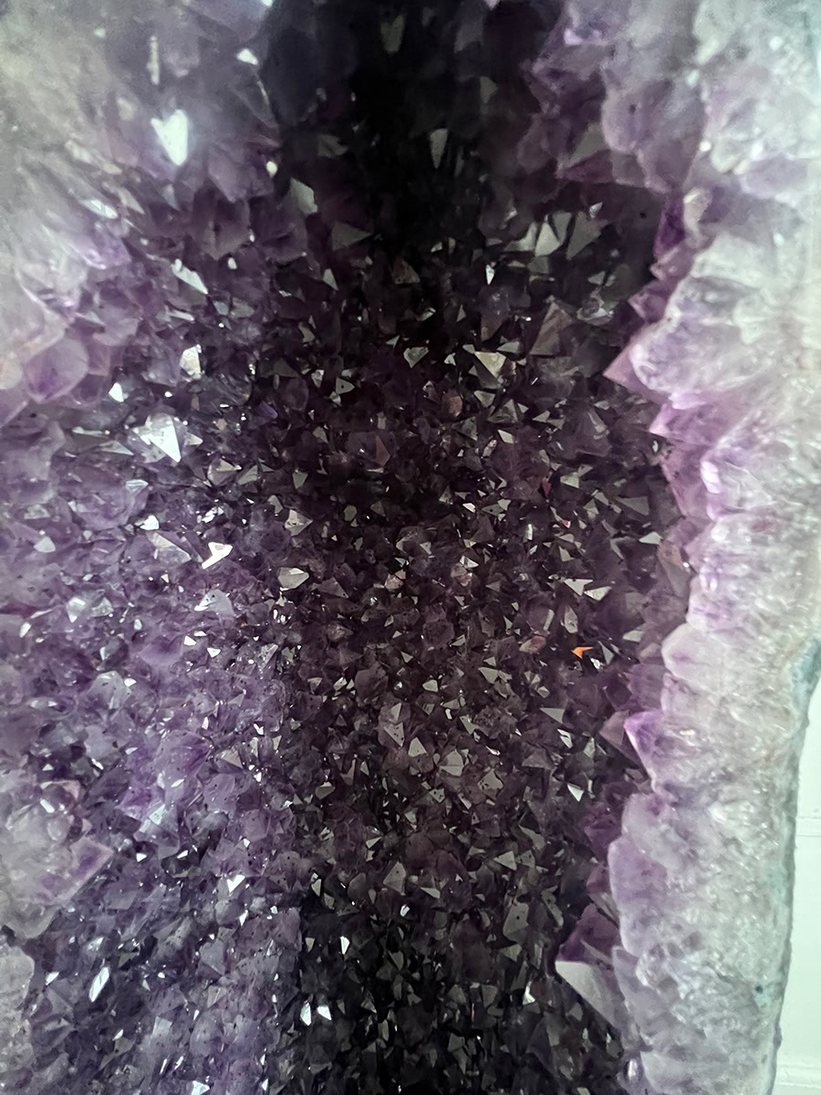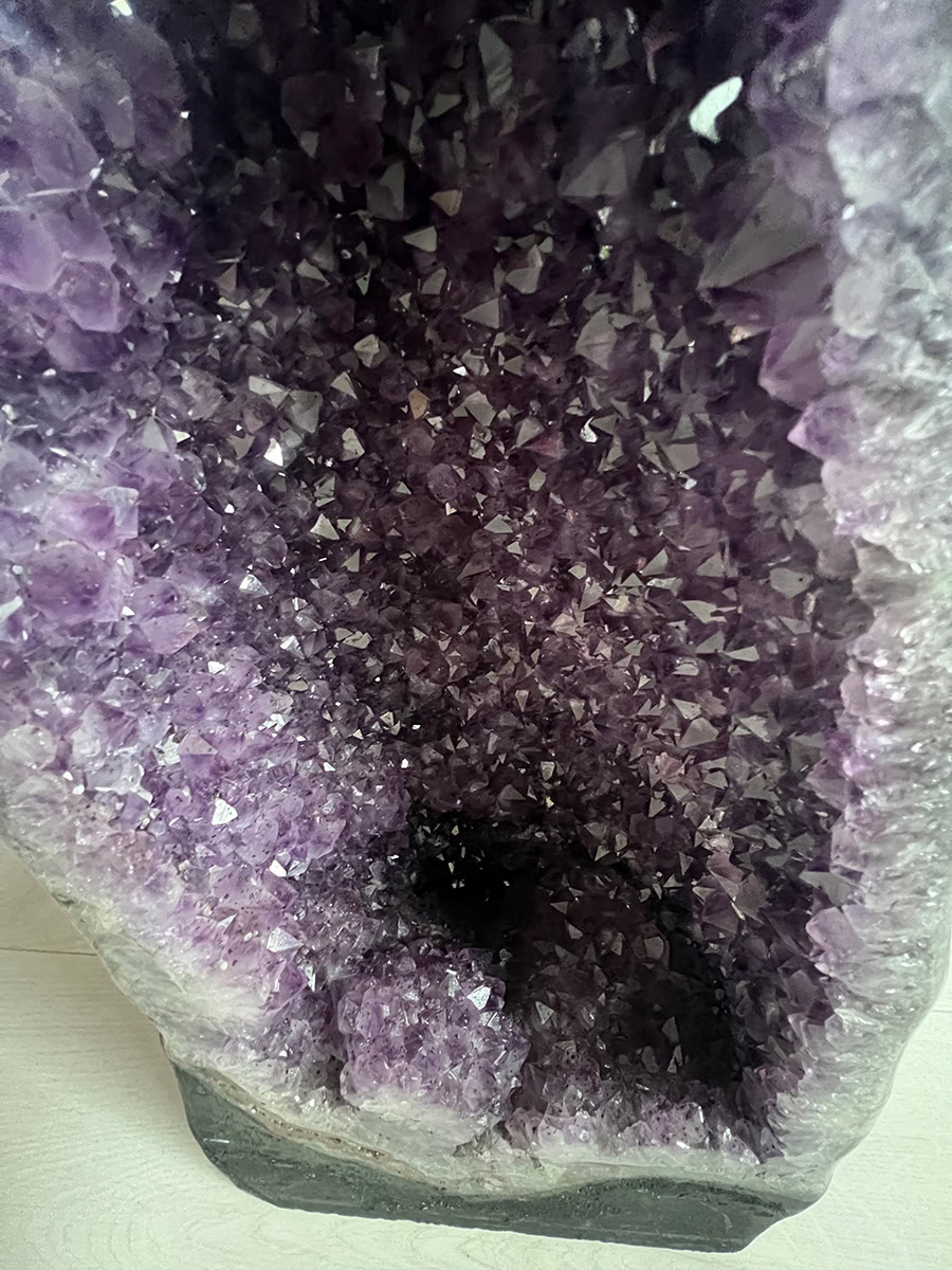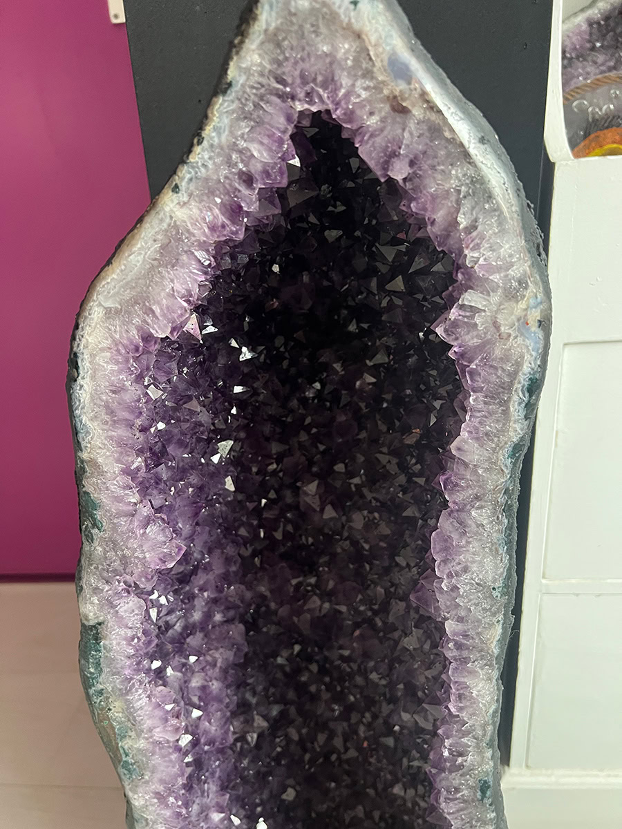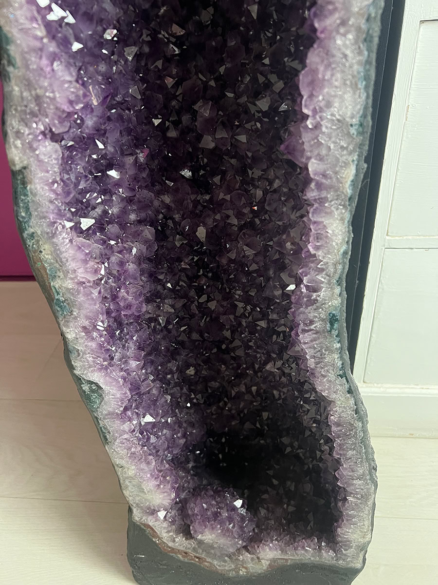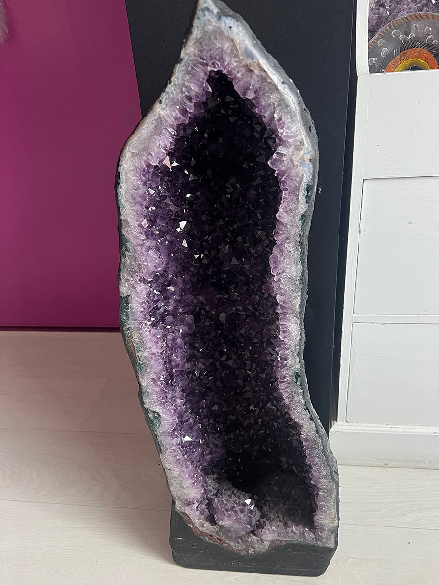 Deze geode is een prachtexemplaar en heeft prachtig gevormde kristallen en mooi diep paars van kleur.