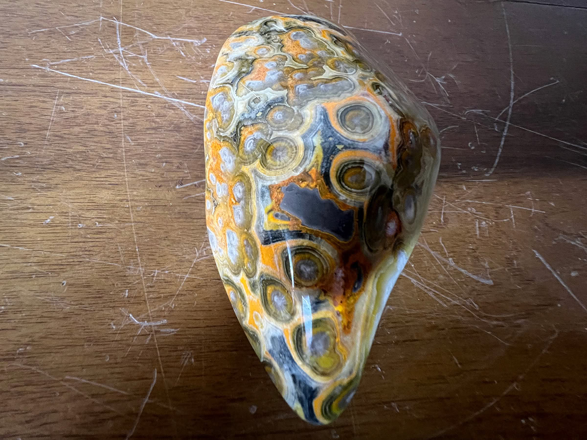 Bumblebee Eyes Jaspis maakt vrolijk, positief en avontuurlijk. De steen helpt je je passie te vinden en geeft moed en doorzettingsvermogen om je hart te volgen. Hij bevordert concentratie, helderheid en intuïtie, en werkt fysiek verwarmend met een positieve invloed op het immuunsysteem en organen zoals milt, maag, lever en nieren.