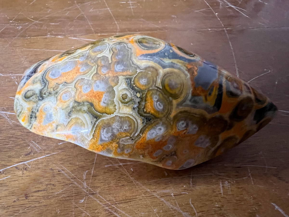 Bumblebee Eyes Jaspis is een wat zeldzamere steen en bestaat uit vulkanisch gesteente, hematiet en zwavel. Het zwavelgehalte in de steen zorgt voor de typisch gele kleur. Arseensulfide zorgt voor de oranje kleur en Mangaandioxide geeft de kenmerkende zwarte elementen.