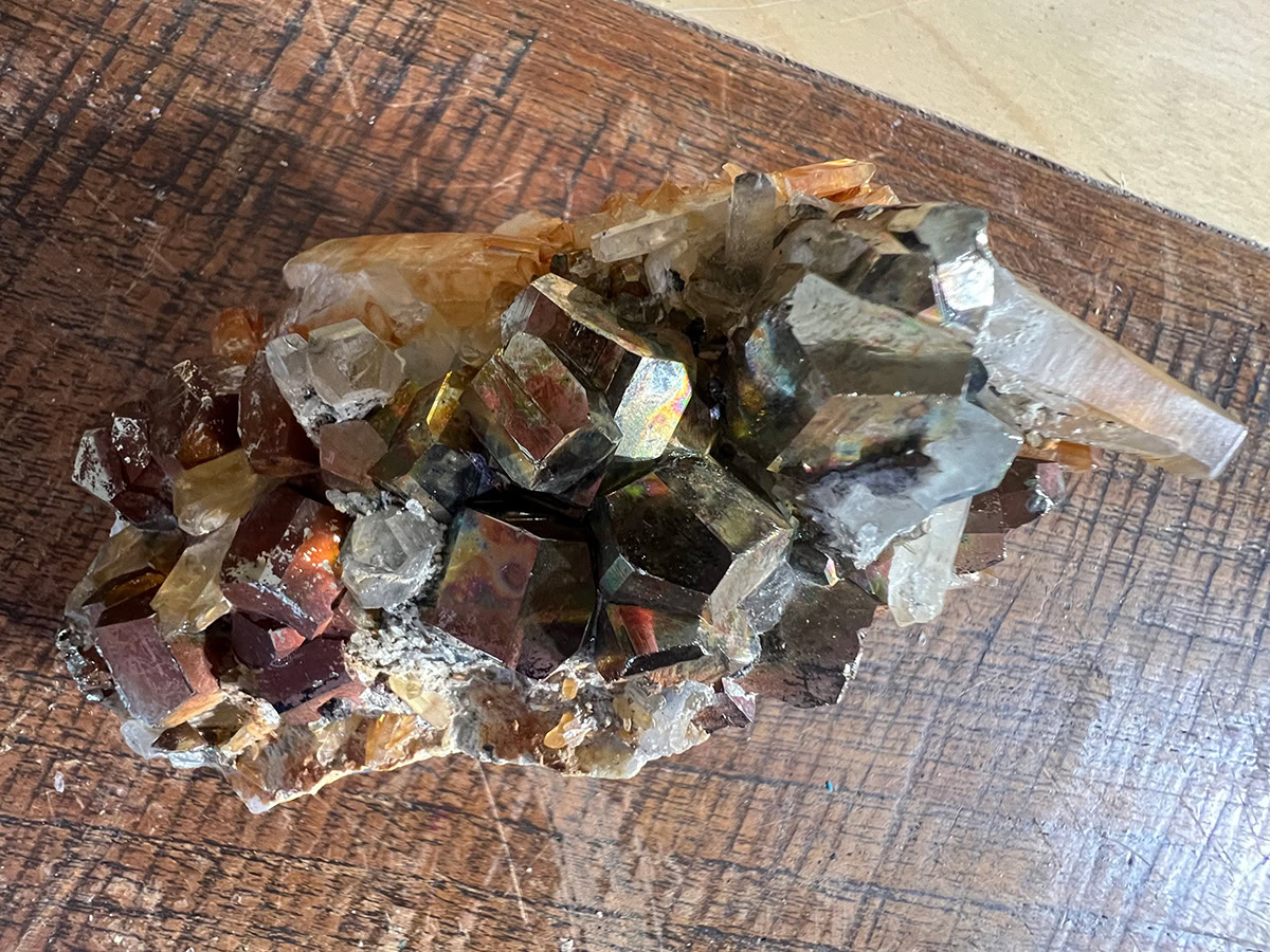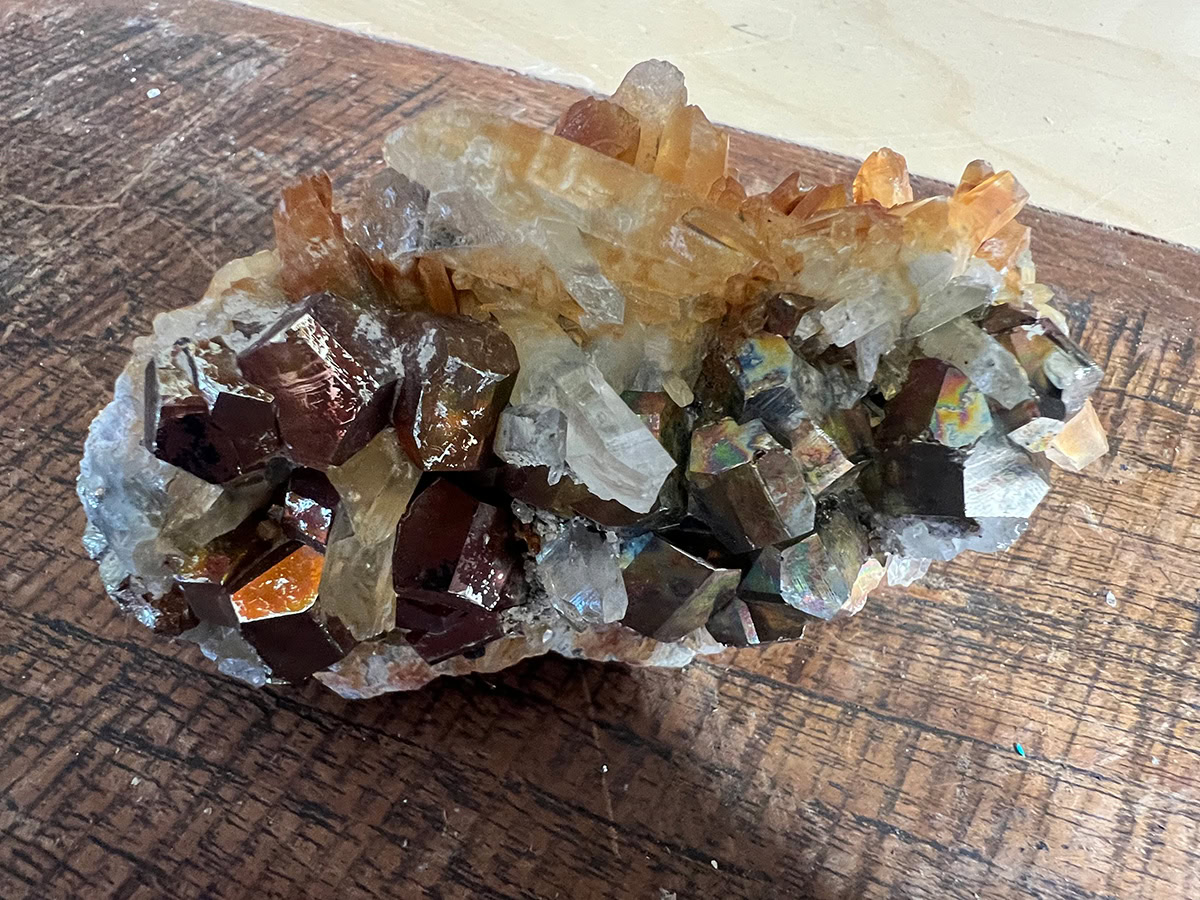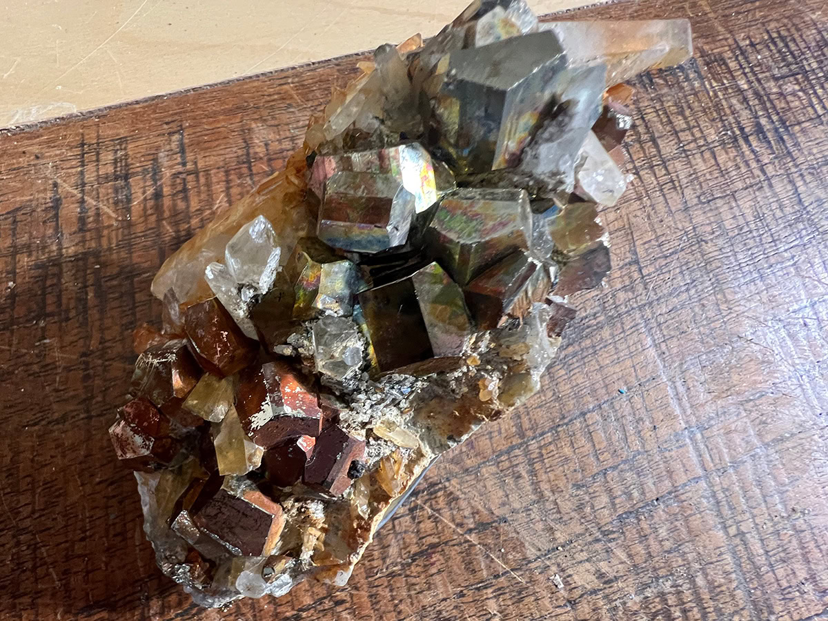 Regenboog Pyriet, ook bekend als iriserend pyriet of pauwpyriet, heeft een kleurrijke irisatie, die het resultaat is van dunne lagen ijzeroxiden of andere secundaire pyriet.