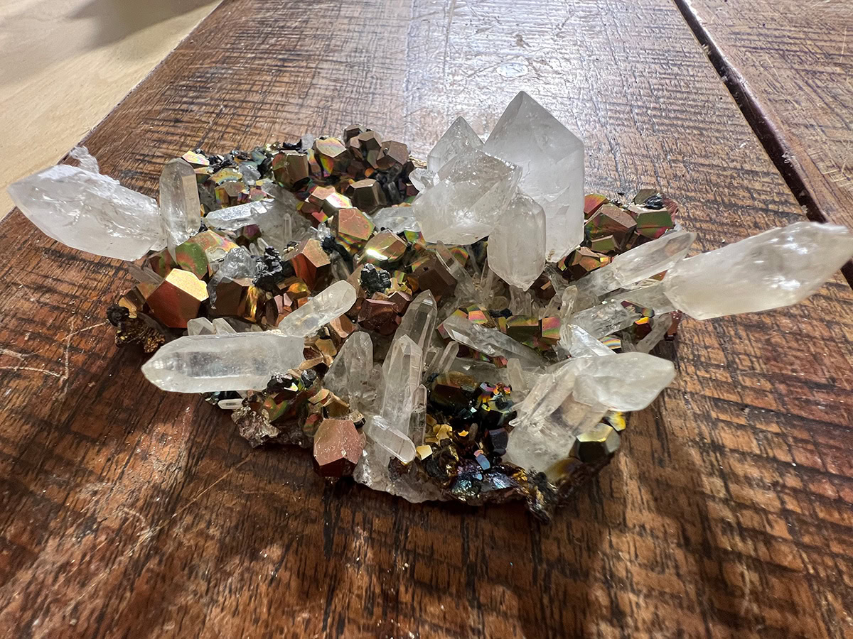 Regenboog Pyriet wordt vaak gebruikt om te aarden en te beschermen tegen negatieve energieën en invloeden. Het bevordert inzicht in de oorzaken van problemen en helpt bij het versterken van de wilskracht en het zelfvertrouwen.