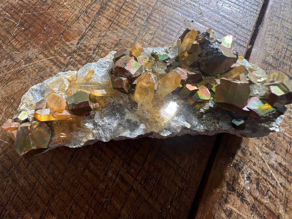 Regenboog Pyriet wordt vaak gebruikt om te aarden en te beschermen tegen negatieve energieën en invloeden. Het bevordert inzicht in de oorzaken van problemen en helpt bij het versterken van de wilskracht en het zelfvertrouwen.